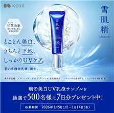 2026年1月14日(木)までのキャンペーン期間内に、公式アカウントをフォローして、キャンペーン対象ポストをリポストすると、後日抽選で500名に『雪肌精 朝の美白UV乳液 サンプル7日分』が当たる、プレゼントキャンペーンとなっています。