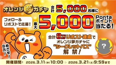 オレンジ夢ガチャ!フォロー&リポストキャンペーン 詳細