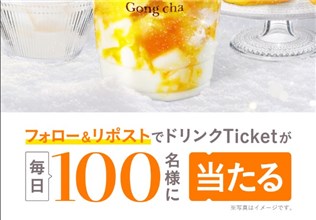 2026年1月8日(木)までのキャンペーン期間内に、公式アカウントをフォローして、毎日投稿される対象ポストをリポストすると、その場で抽選で300名に『ゴンチャ 雪見杏仁 マンゴーミルクティー 無料引換券』が当たる、プレゼントキャンペーンとなっています。