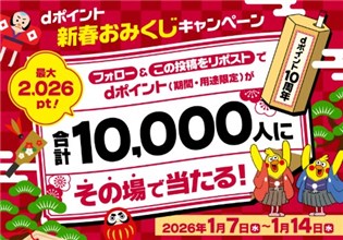 docomoのポイントプログラムの【dポイントクラブ】の公式Xアカウントで「dポイント 新春おみくじキャンペーン【2026年】」が開始しています。