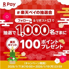 2026年1月19日(月)までのキャンペーン期間内に、公式アカウントをフォローして、キャンペーン対象ポストをリポストすると、後日抽選で1,000名に『楽天ポイント 100ポイント』が当たる、プレゼントキャンペーンとなっています。