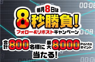 共通ポイントサービスを展開している【Ponta】の公式Xアカウントで「毎月8日は 8秒勝負 フォロー&リポストキャンペーン」が開始しています。