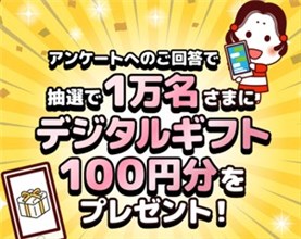 2026年2月19日(木)までのキャンペーン期間内に、LINE友だちに追加をした上でトーク画面の応募先からアンケートに回答をして応募をすると、後日抽選で10,000名に『デジタルギフト 100円分』が当たる、プレゼントキャンペーンとなっています。
