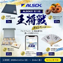 綜合警備保障が運営するセキュリティサービスブランドの【ALSOK (アルソック)】の公式Xアカウントで「ALSOK杯第75期王将戦キャンペーン」が開始しています。