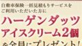 自動車保険一括見積もりでもれなく全員が『ハーゲンダッツアイスクリーム 2個 ローソン無料引換券』を貰える!【保険の窓口インズウェブ・Web応募】