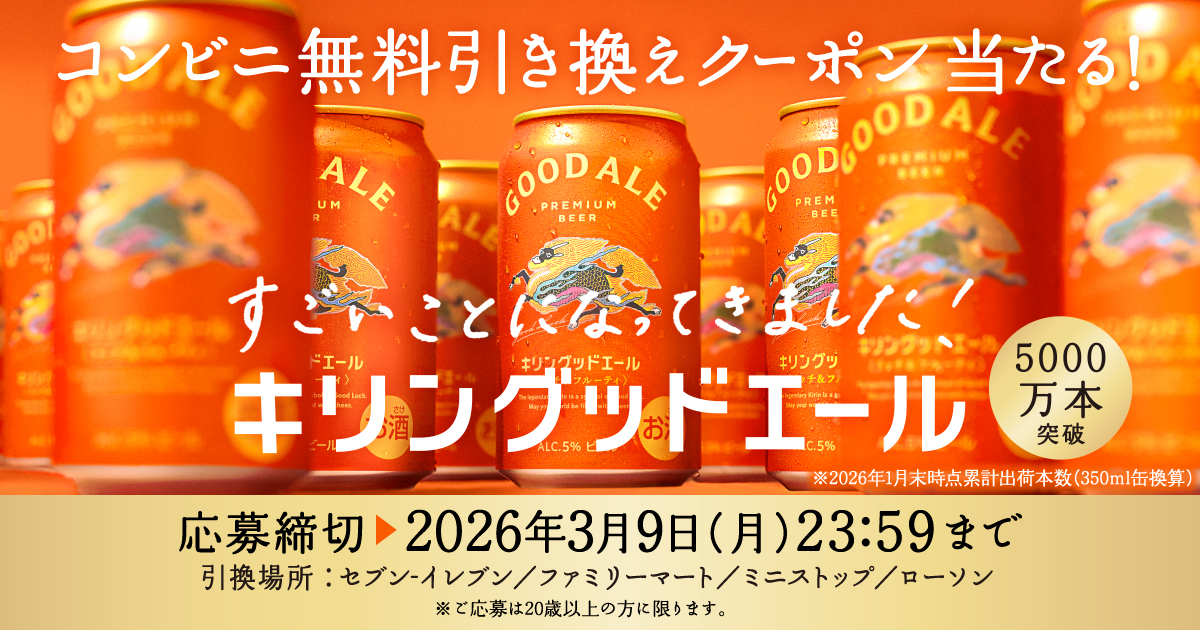 2026年3月9日(月)までのキャンペーン期間内に、特設ページにアクセスをした上でLINEログインをして動画を視聴をしてアンケートに回答して応募をすると、その場で抽選で合計232,000名に『キリン グッドエール 350ml缶 コンビニ無料引換券』が当たる、プレゼントキャンペーンとなっています。