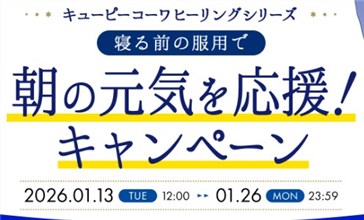 2026年1月26日(月)までのキャンペーン期間内に、公式アカウントをフォローして、キャンペーン期間中に毎日投稿される対象ポストをリポストすると、その場で抽選で1,000名に『キューピーコーワヒーリングシリーズ』が当たる、プレゼントキャンペーンとなっています。