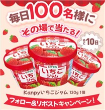 2026年4月24日(金)までのキャンペーン期間内に、公式Xアカウントをフォローして、キャンペーン期間中に毎日投稿される対象ポストをリポストすると、後日抽選で1,000名に『カンピーいちごジャム 無料引換券』が当たる、プレゼントキャンペーンとなっています。