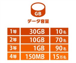 2026/01/21~2026/01/27 データ容量 30GB×10名様・データ容量 10GB×80名様・データ容量 1GB×90名様・データ容量 150MB×150,000名様