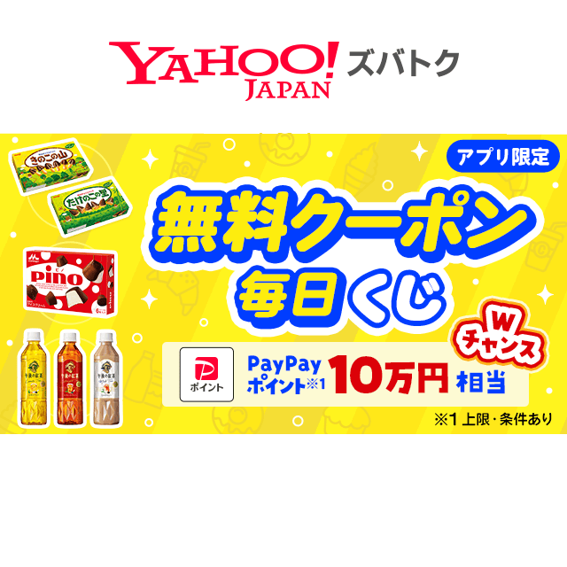 Yahoo!JAPANズバトクの【Yahoo!アプリ】内から引ける「日替わり無料クーポンが当たるキャンペーン」が実施中です。