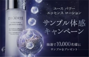 2026年2月27日(金)18時までの期間内に、公式サイトのサンプル申し込みページの応募フォームからオンラインブティック会員で無い人は登録をして、アンケートに回答をして応募をすると、後日抽選で10,000名に『コスメデコルテ ユース パワー エッセンス ローション サンプル 2回分』が貰える、サンプル配布キャンペーンとなっています。