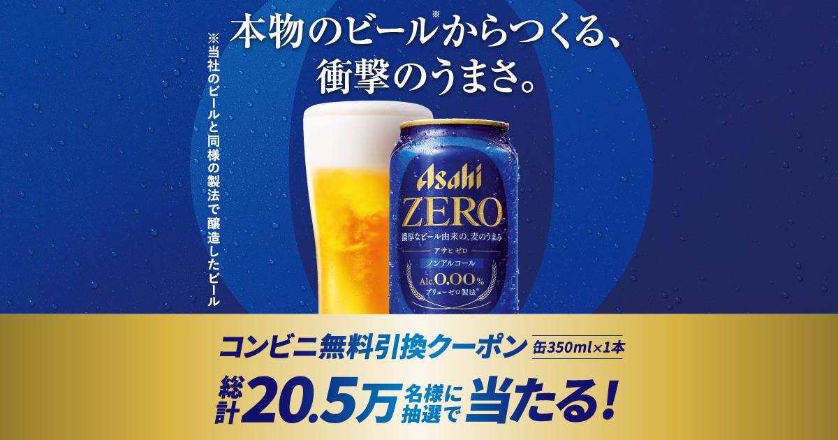 アサヒゼロ が205,000名様に当たる!コンビニ無料引換えクーポンプレゼントキャンペーン 詳細
