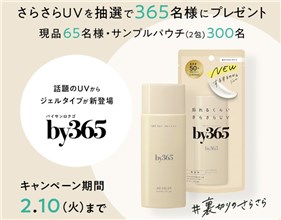 2026年2月10日(火)までのキャンペーン期間内に、公式アカウントをフォローした上で、キャンペーン対象ポストをリポストすると、後日抽選で合計365名に『by365 さらさらUV 現品 or サンプルパウチ』が当たる、プレゼントキャンペーンとなっています。