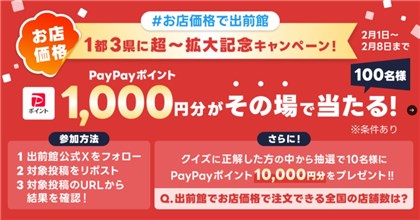 / #お店価格で出前館 1都3県に超~拡大記念🎊#PayPayポイント 1,000円分が100名様にその場で当たる✨