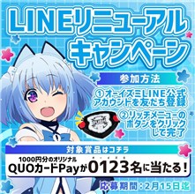 2026年2月15日(日)までのキャンペーン期間内に、LINE友だちに追加をした上でトーク画面下部のメニューから応募をすると、後日抽選で123名に『QUOカードPay 1,000円分』が当たる、プレゼントキャンペーンとなっています。