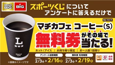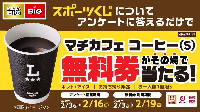【ローソンアプリ スポーツくじアンケートキャンペーン】マチカフェ コーヒー(S) ホット/アイスの無料券がその場で当たる!|ローソン公式サイト