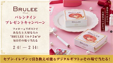 2026年2月14日(土)までの期間中に、公式アカウントをフォローして、キャンペーン期間中に毎日投稿される対象ポストをリポストすると、その場で5,000名に『BRULEEミルク セブンイレブン無料引換券 2枚』が当たる、プレゼントキャンペーンとなっています。
