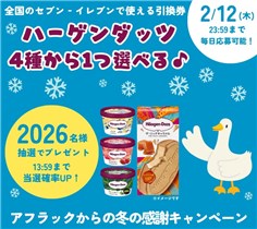 2026年2月12日(木)までのキャンペーン期間内に、公式アカウントをフォローした上で、期間中に毎日投稿される対象ポストをリポストすると、その場で抽選で2,026名に『ハーゲンダッツ 4種から1つ セブンイレブン無料引換券』が当たる、プレゼントキャンペーンとなっています。