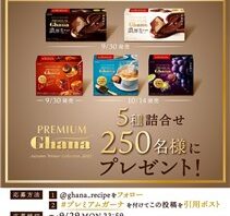終了済みキャンペーン・懸賞フォロー&引用RTで250名に『プレミアムガーナ 秋冬コレクション 5種類詰合せ』が当たる!2025年9月【ロッテ・X(Twitter)キャンペーン】 ロッテのチョコレートブランド【ガーナチョコレート】公式X (Twitter)アカウントで「プレミアムガーナ秋冬コレクション詰合せが当たる!キャンペーン」が開始しています。 2025年9月29日(月)までのキャンペーン期間内に、公式アカ...2025/09/25 [6:40]終了済みキャンペーン・懸賞