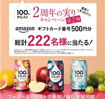 終了済みキャンペーン・懸賞フォロー&RTで222名に『Amazonギフト券 500円分』が当たる!2025年10月【100%カジューハイ・X(Twitter)キャンペーン】 ※20歳未満の方は応募できません。 100%果汁のお酒の【100%カジューハイ】の公式X (Twitter)アカウントで「100%カジューハイ2周年の実りキャンペーン第2弾」が開始しています。 2025年10月15日(水)までのキャ...2025/10/03 [7:00]終了済みキャンペーン・懸賞