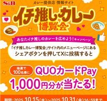 フォロー&ポストで100名に『QUOカードPay 1000円分』が当たる!2025年10月【エスビー食品・X (Twitter)キャンペーン】