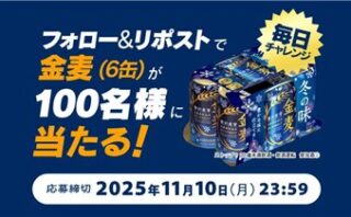 X (Twitter)キャンペーンフォロー&RTで100名に『金麦 350ml×6缶』が当たる!2025年10月~11月【サントリー・X(Twitter)キャンペーン】