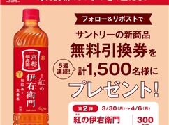 Xキャンペーン フォロー&RPで300名に『紅の伊右衛門 富士薬品ドラッグストアグループ無料引換券』がその場で当たる!2026年3月【セイムス・Xキャンペーン】