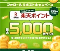 Xキャンペーン フォロー&RPで合計260名に『楽天ポイント 200ポイント or 5000ポイント』がその場で当たる!2026年2月【セイムス・Xキャンペーン】