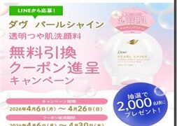 LINEキャンペーン LINE友だちに追加・応募で2000名に『ダヴ パールシャイン 透明つや肌洗顔料 サンドラッグ無料引換券』がその場で当たる!2026年4月【サンドラッグ・LINEキャンペーン】