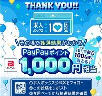 フォロー&RTで1000名に『PayPayポイント 1000円相当』がその場で当たる!2025年10月【求人ボックス・X(Twitter)キャンペーン】