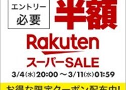 お得情報 【楽天市場】半額商品が多数!買いまわりでポイントが最大10倍になる『楽天スーパーSALE』が開催中!【2026年3月11日2時〆】 総合インターネットショッピングサイトの【楽天市場】で「エントリー必須の楽天スーパーSALE【2026年3月】」が開始しています。2026年3月11日(水)2時までのキャンペーン期間中に、キャンペーン特設ページからエントリーをして、楽天市場の... 2026.03.04 【21:16】 お得情報クーポン情報セール情報全員プレゼント買い物キャンペーン情報