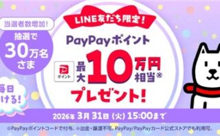 LINEキャンペーン【PR】LINE友達に追加・応募で合計30万名に『PayPayポイント 1円~10万円相当』がその場で当たる!2025年11月~2026年3月【ソフトバンク・LINEキャンペーン】