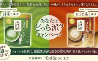 X (Twitter)キャンペーンフォロー&ポストで200名に『辻利 抹茶ミルク&ほうじ茶ミルク 各1袋』が当たる!2025年10月【京都宇治総本家 辻利・X(Twitter)キャンペーン】 京都の抹茶などの老舗メーカーの【京都宇治総本家 辻利】公式X (Twitter)アカウントで「辻利 あなたはどっち派?キャンペーン」が実施中です。 2025年10月16日(木)までのキャンペーン期間内に、公式アカウントをフォローして、...2025/10/05 [6:30]X (Twitter)キャンペーンプレゼント・懸賞初回のみ応募可能大量当選(100名以上)