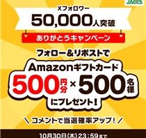 X (Twitter)キャンペーンフォロー&RTで合計110名に『Amazonギフト券 最大で2万円分』が当たる!2025年10月【リノシー・X(Twitter)キャンペーン】