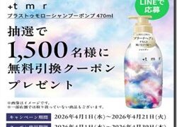 ※応募にはサンドラッグの会員番号が必要です。ドラッグストア店舗を全国展開している【サンドラッグ】の公式LINEアカウントで「プラストゥモローシャンプー ポンプ 470ml 抽選で無料引換クーポンプレゼントキャンペーン」が実施中です。2026...