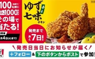 フライドチキンの販売チェーン店舗を全国展開する【ケンタッキーフライドチキン】の公式X (Twitter)アカウントで 「香るゆず七味チキン販売記念キャンペーン」が実施中です。 2025年11月4日(火)までのキャンペーン期間内に、公式アカ...