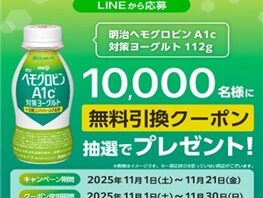 LINEキャンペーン【サンドラッグ会員番号必須】LINE友だちに追加・応募で1万名に『明治ヘモグロビン A1c 対策ヨーグルト 112g 無料引換券』がその場で当たる!【LINEキャンペーン】
