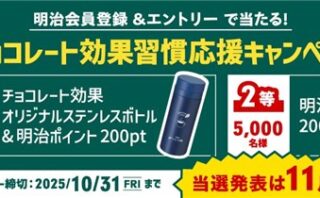 Web応募明治会員IDでエントリーで合計5100名に『セブンイレブン 明治商品無料引換券と交換できるポイント200P』などが当たる!2025年10月【明治・Web応募】 お菓子を製造販売している【明治】の公式サイトで「チョコレート効果習慣応援キャンペーン 第1弾」が実施中です。 2025年10月31日(金)までのキャンペーン期間内に特設ページにアクセスをして、会員登録をしていない人は会員登録をした上で...2025/10/16 [6:00]Web応募プレゼント・懸賞初回のみ応募可能大量当選(1000名以上)