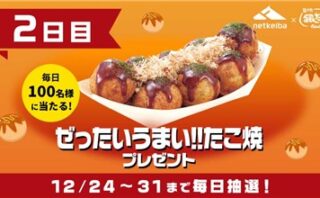 アプリキャンペーンフォロー&RT&アプリ内から応募で800名に『築地銀だこ ぜったいうまい!!たこ焼きデジタルギフト』がその場で当たる!2025年12月【netkeiba・アプリキャンペーン】