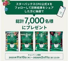 フォロー&診断結果をシェアで7000名に『スターバックス オリガミ 4杯分』が当たる!2025年11月~2026年2月【スターバックス・X(Twitter)キャンペーン】