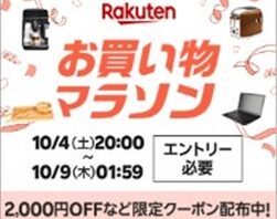 Web応募【PR】楽天お買い物マラソン事前エントリーが実施中!『楽天ポイント 10P/5000P』が約6.4万名に当たる!お買い物マラソンスロット事前告知版も!【2025年10月4日20時〆】 総合インターネットショッピングサイトの【楽天市場】で2025年10月4日(土)20時に開始する、お買い物マラソン【2025年10月】(エントリー必須)の事前告知キャンペーンとして『お買い物マラソンスロット <事前告知板 2025年10月>...2025/10/03 [6:20]Web応募プレゼント・懸賞初回のみ応募可能大量当選(10000名以上)
